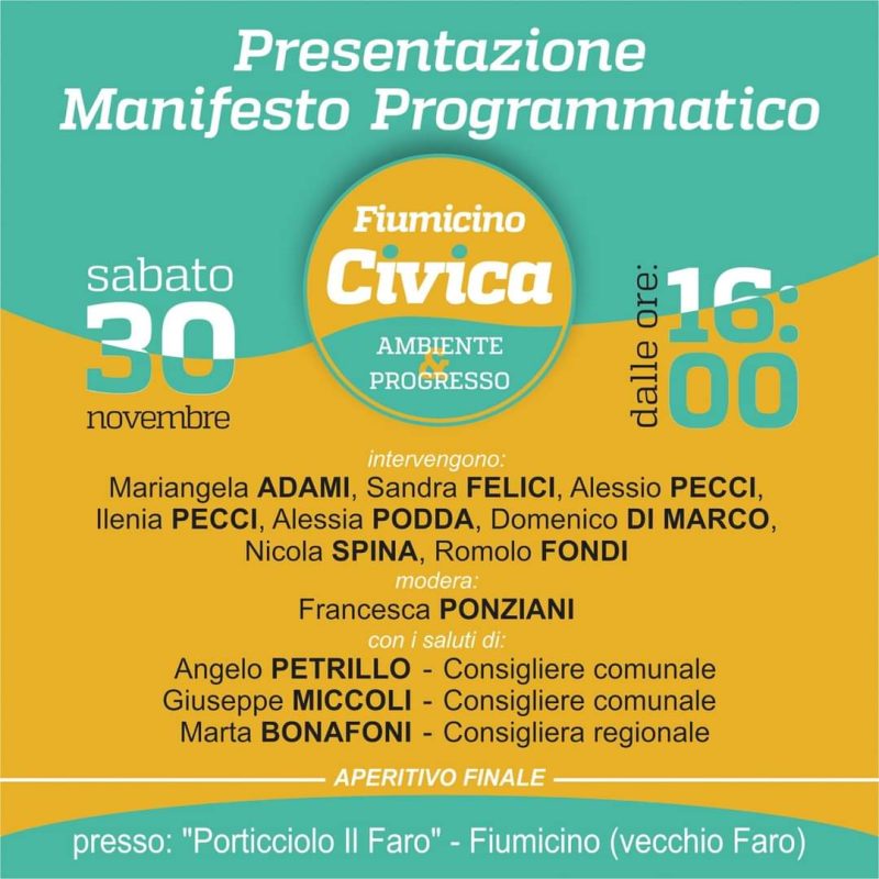 PoliticaIl 30 novembre, presentazione del manifesto programmatico e della carta dei valori di Fiumicino Civica