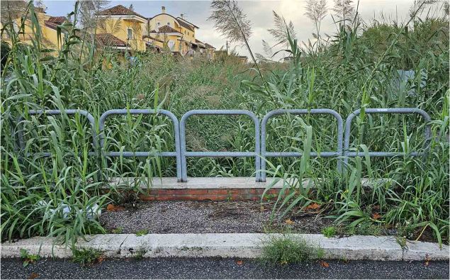 Lungo le sponde del fosso in via Val Lagarina le canne hanno raggiunto l’altezza di oltre 4 metri mentre in altri le sterpaglie hanno ridotto le dimensioni dell’alveo dove scorre l’acqua di scolo dei terreni agricoli diretta all’idrovore di Isola Sacra.