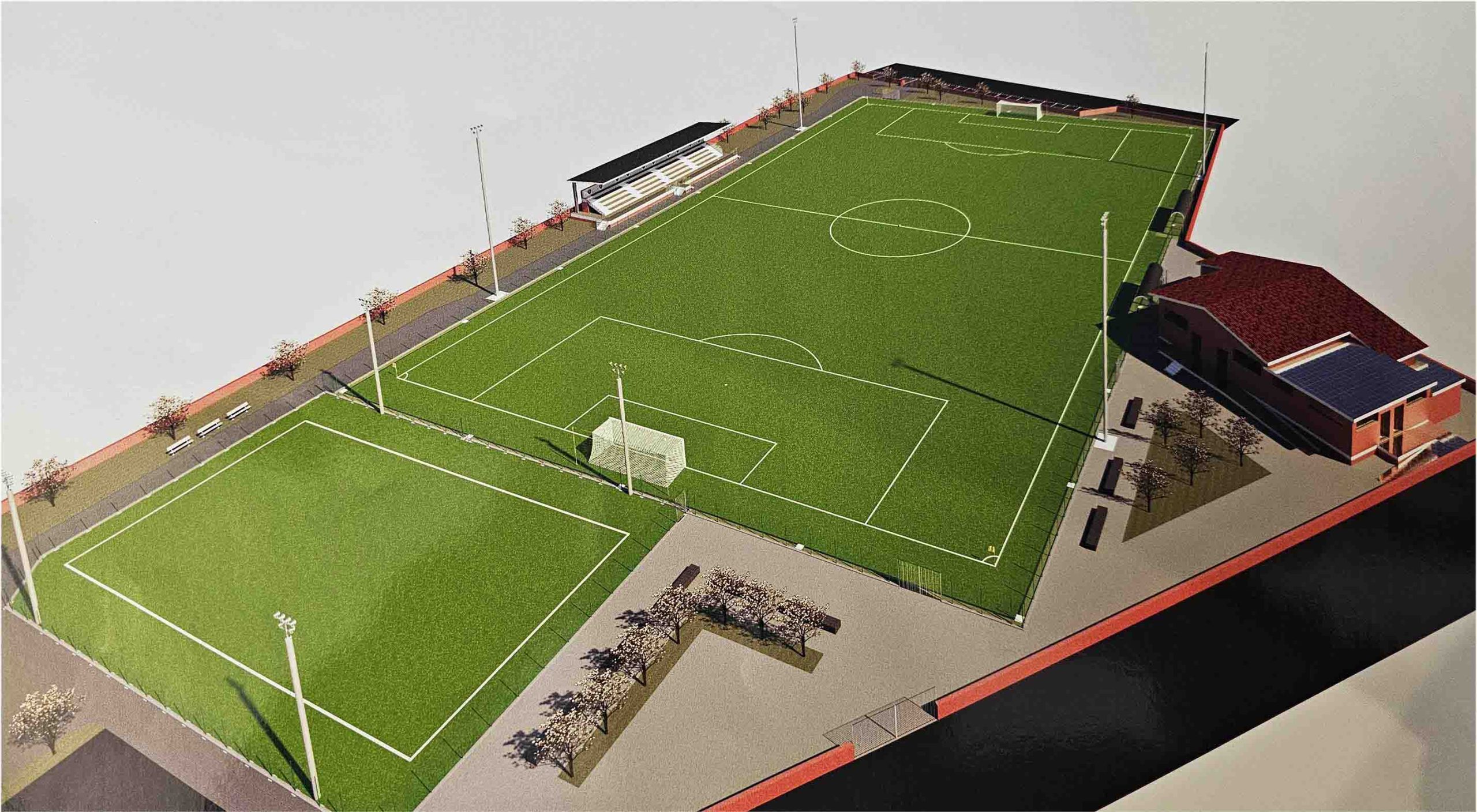 Gli interventi sulla struttura contemplano l’adeguamento delle dimensioni del campo di calcio, con relativa posa del manto di erba sintetica, la sistemazione di quello di calcetto e la realizzazione di una nuova tribuna coperta in grado di ospitare 200 tifosi. Previsto, inoltre, un locale adibito a servizi igieni con bar nell’area spettatori e una nuova illuminazione per match in notturna. La struttura verrà dotata di una nuova recinzione di 2,20 metri lungo il perimetro mentre sui lati minori sarà di 7. Saranno realizzati anche 2 nuovi cancelli per consentire l’accesso sul rettangolo ai mezzi di soccorso.