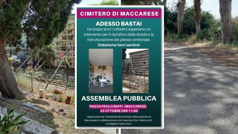 Al centro della protesta anche la problematica della strada d’accesso, via di Maccarese, nel tratto di competenza capitolina, diventata ormai inagibile: “I carri delle varie agenzie funebri ormai, con fatica, accettano di trasportare i defunti al cimitero di Maccarese. Il Tpl è sospeso ormai da anni perché, per le aziende di trasporti, non è una strada che garantisca sicurezza ai mezzi e ai viaggiatori: quindi gli anziani non possono andare se non accompagnati da qualcuno”, è ancora sottolineato.