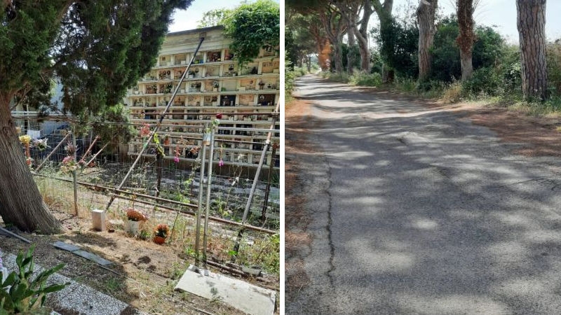 “Inoltre – proseguono – ricordiamo ad Ama s.p.a ed a Roma capitale, che i lavori strutturali all’interno del camposanto sono a carico dell’azienda stessa, e la strada di accesso per arrivare al cimitero, ossia via di Maccarese, ultimo tratto di competenza proprio del comune di Roma capitale, è diventata ormai da troppo tempo impraticabile in tutti i sensi per l’asfalto dissestato e devastato dalle radici dei pini“.
