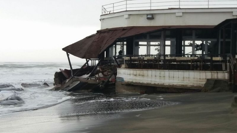 Ancora un duro colpo per la costa di Fregene sud. La situazione, questa mattina, appare sempre più critica. La forte mareggiata, alimentata da vento di libeccio fino a 40 nodi da metà pomeriggio di ieri, ha provocato nella notte il crollo della terrazza e della tettoia fronte mare dello storico stabilimento La Nave, uno dei simboli della località.