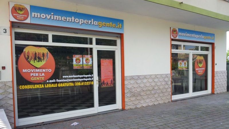 La sede “Movimento per la Gente” di Fiumicino è operativa tutti i pomeriggi e si prefigge di dare, con l’aiuto degli avvocati del movimento, consulenza legale gratuita, soprattutto per problemi legati ai pagamenti delle cartelle esattoriali. La sede si propone anche come centro d’ascolto per cittadini in difficoltà in modo da poter mettere a sistema le risorse, le idee e le attività di tutti i partecipanti al movimento stesso.
