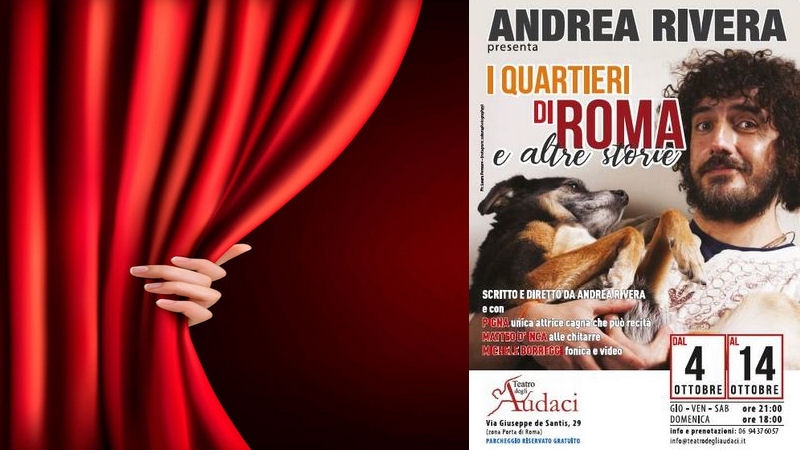 Prende il via la stagione al Teatro degli Audaci, lo stabile del III Municipio di Roma, con uno degli spettacoli più divertenti del momento “I quartieri di Roma ed altre storie…” scritto ed interpretato da Andrea Rivera in scena dal 4 al 14 ottobre 2018!