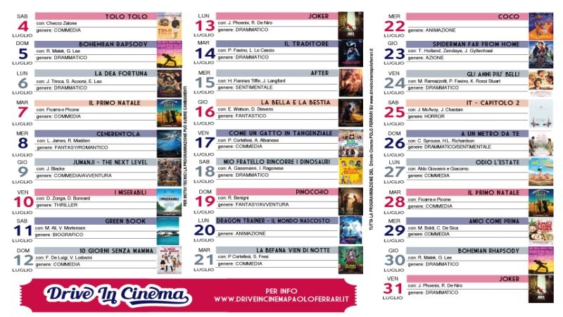 L’apertura del Drive In Cinema Paolo Ferrari sarà sabato 4 luglio e gli spettacoli proseguiranno sino al 15 settembre.