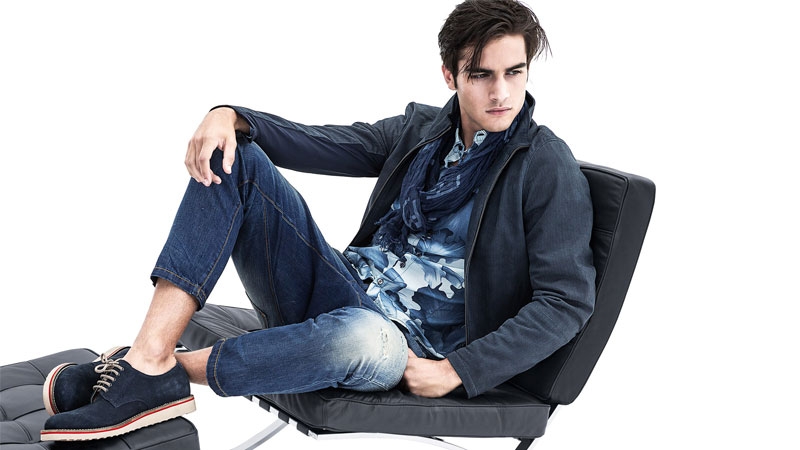 Dalla nascita sino a oggi le collezioni della linea denim Armani Jeans, il cui logo è caratterizzato dal celebre profilo dellaquilotto e dalle iniziali AJ, si sono distinte per una tipologia di abbigliamento casual, dalle nuance variegate e dalle stampe vivaci (in netta contrapposizione con la monocromaticità delle altre linee), offrendo alla clientela la possibilità di indossare abiti alla moda, ma sempre caratterizzati da una certa sobrietà.