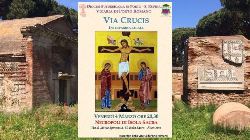 Venerdì 4 marzo alle ore 20.30, la città di Fiumicino vivrà un evento molto importante legato alla Quaresima, che raffigura gli ultimi avvenimenti drammatici legati alla Passione di Gesù. Si tratta della Via Crucis, che quest’anno si svolgerà in uno tra gli scenari più suggestivi ed unici della nostra città: la Necropoli di Porto all’Isola Sacra, il complesso che attualmente consente la visione di oltre 200 edifici funerari.