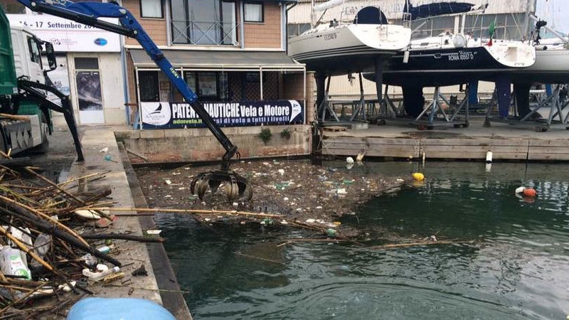 CronacaFiumicino, grandi pulizie nello specchio d'acqua della darsena