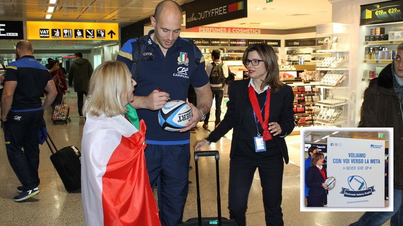 CronacaFiumicino, l'aeroporto si tinge di blu per salutare gli azzurri del rugby in partenza per la Francia