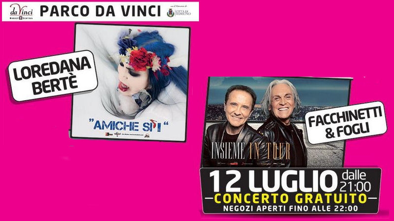 FocusParco Da Vinci: Giovedì 12 luglio concerto gratuito con Bertè, Facchinetti & Fogli