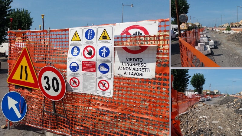 CronacaFiumicino. Viale Traiano, una corsia occupata da un cantiere fantasma