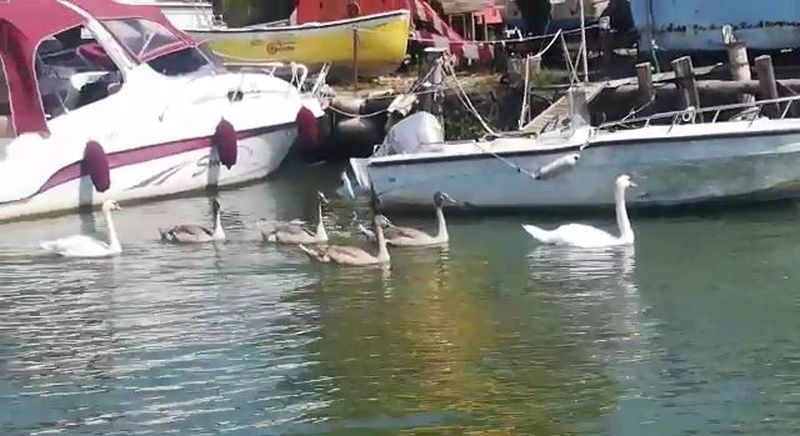 AttualitàFiumicino: un’intera famiglia di cigni a spasso nel Tevere