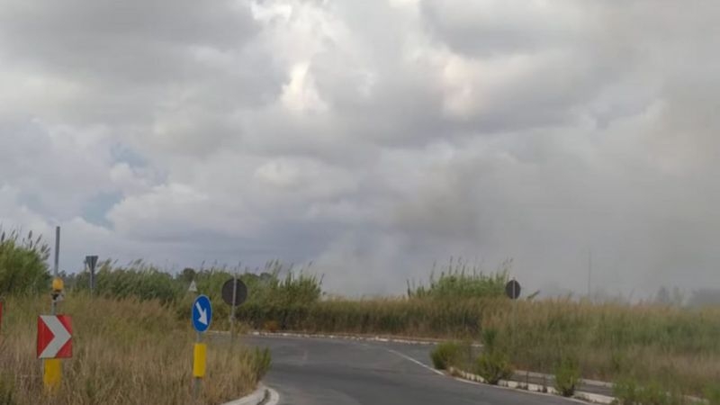 Parco Leonardo, canneto in fiamme in prossimità di via delle Arti