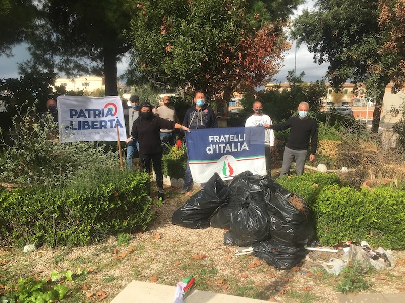 Fiumicino, militanti del circolo FDI-Patria e Libertà ripuliscono il parco di Quinto Pasquino