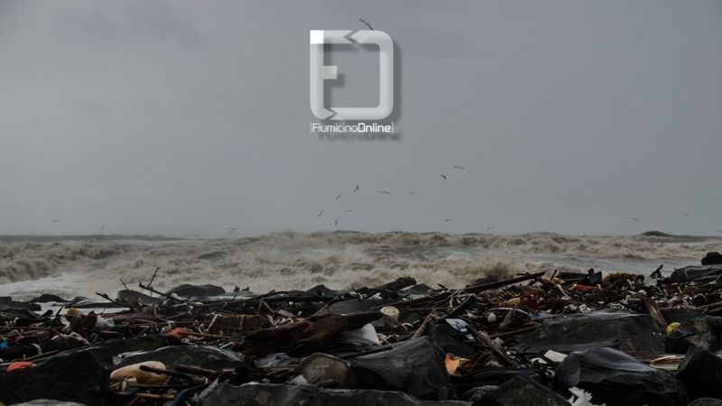 CronacaMaltempo, le scogliere del faro coperte dai rifiuti portati dalla piena del Tevere