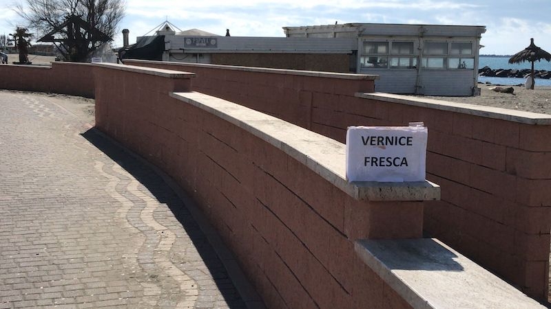 AttualitàFiumicino, il Lungomare rinnova il look: riverniciato il mattonato del muretto