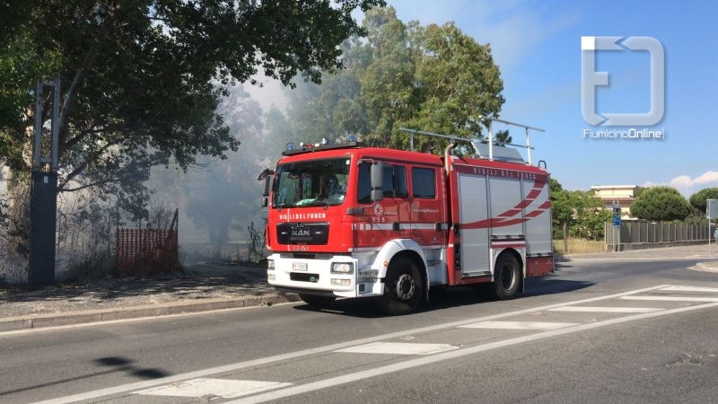 CronacaIsola Sacra, incendio di sterpaglie lungo via Coni Zugna