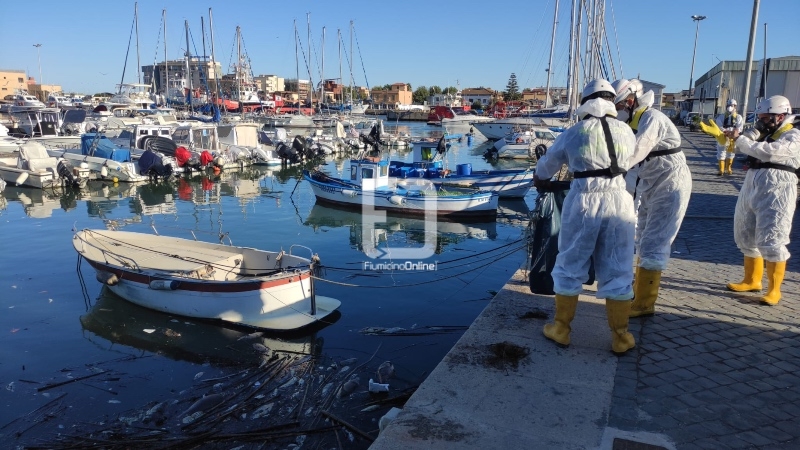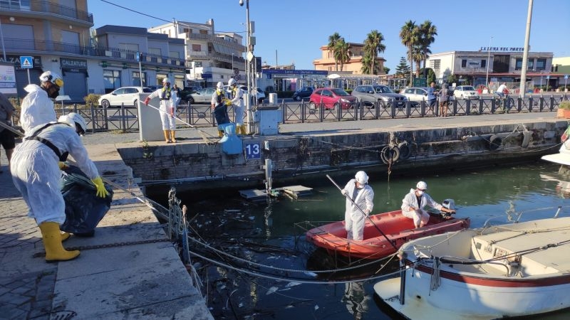 CronacaFiumicino, moria di pesci: rimossi 6 quintali di carcasse dalla darsena