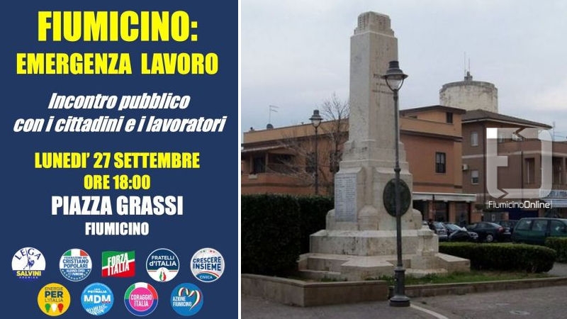 PoliticaFiumicino: "Emergenza lavoro", lunedì 27 settembre centrodestra e civiche in piazza Grassi