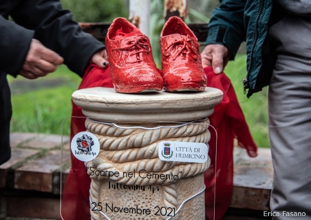 25 novembre “Scarpe nel Cemento” oggi a Fiumicino la prima installazione