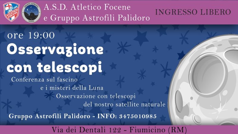 Domenica 8 maggio con il Gruppo Astrofili Palidoro per osservare la Luna con telescopi