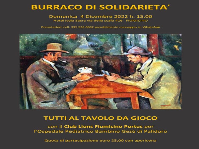 FocusBurraco di solidarietà domenica 4 dicembre con il Club Lions Fiumicino Portus