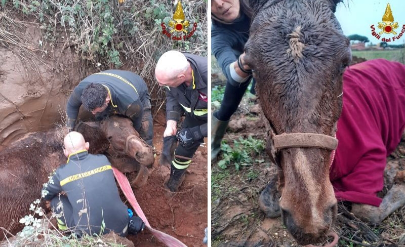 CronacaCavalla cade in un dirupo a Santa Marinella, salvata dai pompieri