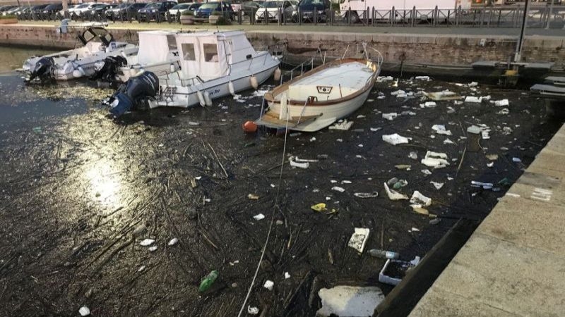 Fiumicino, la Darsena un'altra volta piena di rifiuti