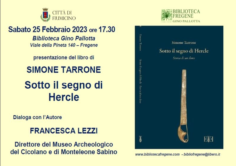FocusBiblioteca Gino Pallotta, sabato 25 febbraio presentazione del libro di Simone Tarrone "Sotto il segno di Hercle"