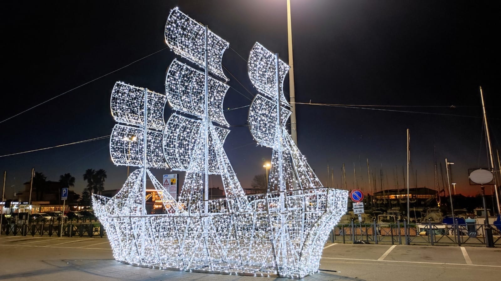 CronacaDarsena Fiumicino "vestita a festa": arrivato un Veliero carico di luci di Natale