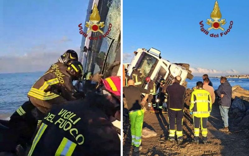 CronacaOstia, camion si ribalta e finisce sulla scogliera