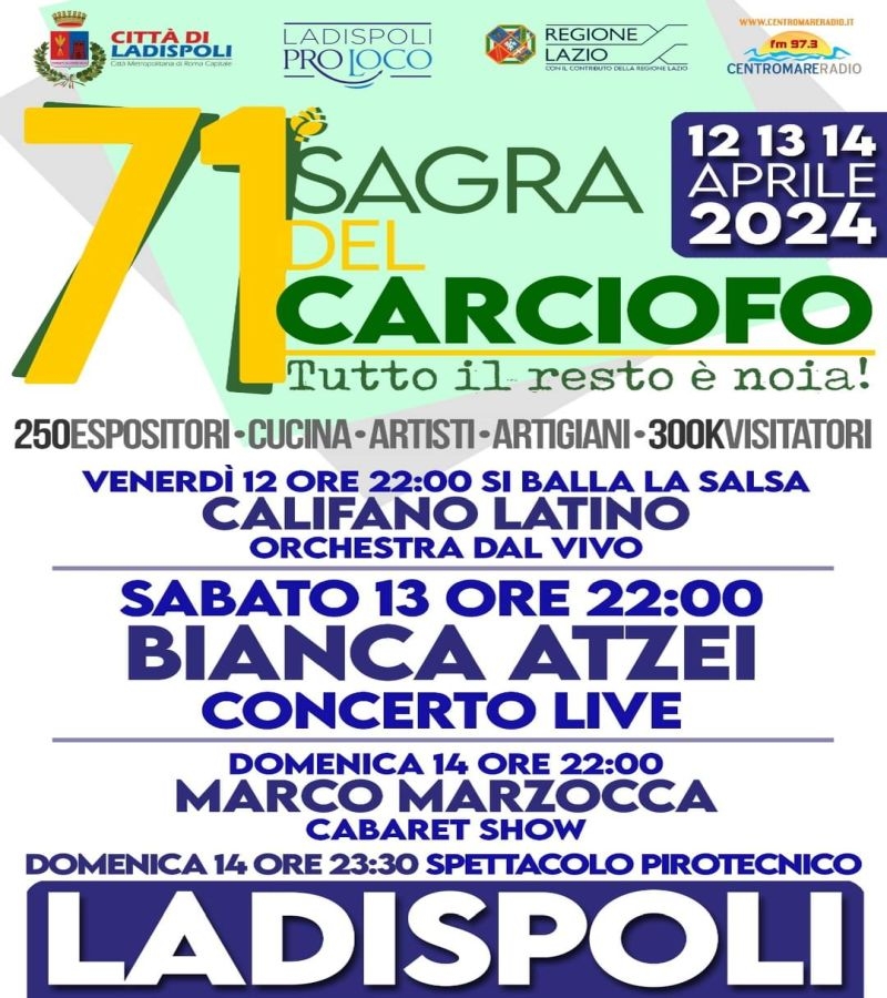 FocusEventi: dal 12 al 14 aprile a Ladispoli la 71ma "Sagra del Carciofo"