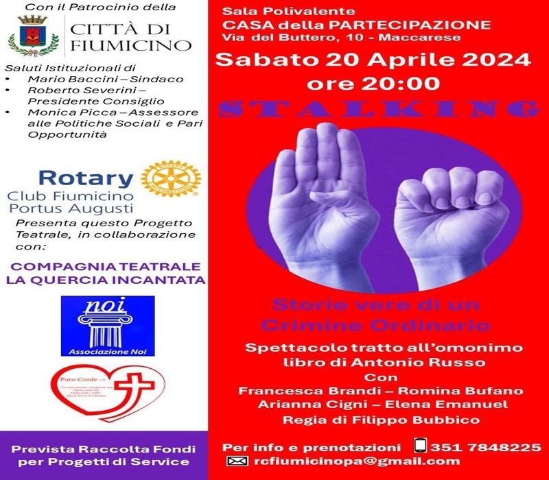 FocusRotary Club Fiumicino Portus Augusti presenta il progetto "Stalking" storie vere di crimine ordinario