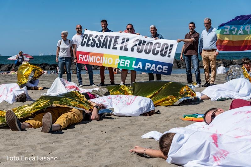 A Fiumicino il flash mob contro la guerra al grido di "cessate il fuoco!"