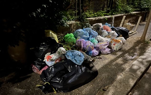 LettereVia delle Scuole, marciapiede invaso dai rifiuti