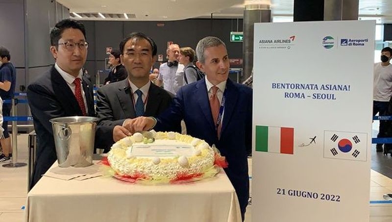 Le celebrazioni per la riapertura dei voli tra i due Paesi si sono svolte oggi presso il Molo E del Leonardo da Vinci, alla presenza dell’ambasciatore coreano in Italia Lee Seong Ho, della Direttrice dell’Istituto culturale coreano Chun Ye Jin, del Presidente della FITA (Federazione Italiana di Taekwondo) Angelo Cito, del Presidente della comunità coreana Ryou Kyoung Hoon, del General Manager Italy di Asiana Airlines Kim Hyeoktae e dell’Head of Aviation Business Development di Aeroporti di Roma Federico Scriboni.