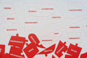 L’installazione evidenzia come, nel linguaggio comune, a comportamenti e qualità simili possano essere associate definizioni diverse a seconda che si parli di uomini o di donne, con un doppio standard che tende a riservare ai primi aggettivi più valorizzanti e alle seconde etichette più penalizzanti: ad esempio, un uomo può essere definito “carismatico” mentre una donna, a parità di atteggiamento, viene descritta come “manipolatrice”. Proprio per rendere visibile questo meccanismo, il pannello-puzzle riporta circa 20 aggettivi comunemente attribuiti alle donne in chiave negativa – tra cui “arrogante”, “lunatica”, “isterica” – che passeggeri e colleghi possono “eliminare” applicando al loro posto i tasselli con i corrispondenti termini positivi, come “sicura”, “flessibile”, “appassionata”. In questo modo, il puzzle si completa progressivamente, contribuendo in maniera simbolica a promuovere un linguaggio più consapevole e rispettoso.
