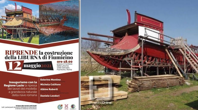 Riprenderanno ufficialmente domani, mercoledì 12 maggio, i lavori del modello, a grandezza naturale, della nave romana da guerra del I° sec. d.C., lunga 37 e larga 7 metri, con due ordini di voga, iniziata nel 2001 dalla famiglia di maestri d’ascia Carmosini e poi interrotti anni fa per mancanza di fondi.