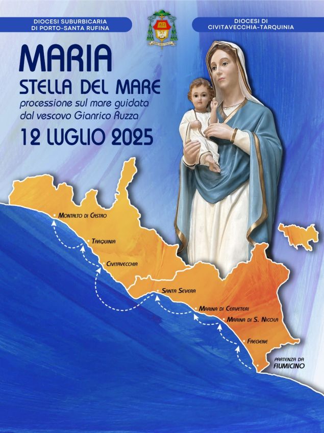 “Maria, Stella del mare”: sarà questo il filo conduttore al centro della processione sul mare proposta dalle diocesi di Porto-Santa Rufina e di Civitavecchia-Tarquinia per sabato 12 luglio. Un’imbarcazione, con a bordo una Sacra Immagine Mariana, accompagnata dal Vescovo Gianrico Ruzza, salperà alle ore 10 da Fiumicino viaggiando lungo il litorale settentrionale del Lazio, per arrivare nel pomeriggio a Montalto di Castro.