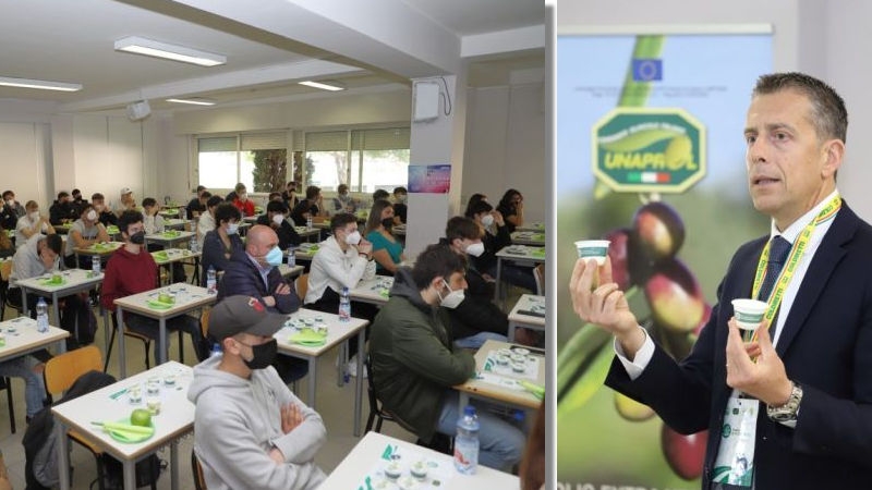 I ragazzi delle classi quarte e quinte dell’Istituto Tecnico Agrario hanno incontrato il Dott. Nicola Di Noia (Direttore Generale UNAPROL e Amministratore Delegato EVOSCHOOL), accolto dalla Prof.ssa Marianna Barberio, Vicepreside dell’Istituto, in una lezione – degustazione, nella quale è stato proposto un nuovo modo di scoprire e valorizzare l’olio, non solo attraverso una presentazione teorica ma soprattutto vivendo l’esperienza della degustazione guidata di alcuni campioni di olio d’oliva, secondo la tecnica dell’assaggiatore professionale. Sono stati infine illustrati i percorsi formativi post diploma che conducono alla figura professionale di “evologo”, un consulente specializzato che aiuta le aziende produttrici a migliorare il proprio prodotto.