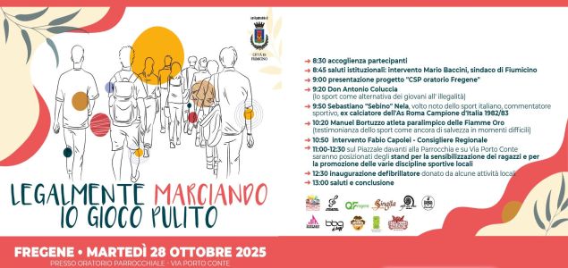 Teatro dell’evento l’Oratorio Parrocchiale in Via Porto Conte. Alle 8.30 ci saranno i saluti istituzionali del sindaco di Fiumicino Mario Baccini, alla presenza del ministro dello Sport, Abodi, e poi le testimonianze di Don Coluccia, Manuel Bortuzzo, atleta paralimpico delle Fiamme Oro, e Sebino Nela, ex calciatore della Roma.