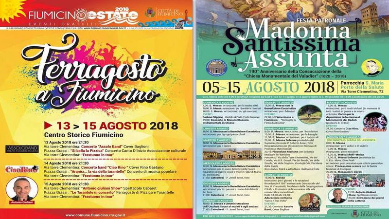 Con questa sera, alle 22 su via Torre Clementina (da Largo dei Delfini a via Orbetello), la gara di atletica “Un’Americana a Fiumicino” (Atletica Villa Guglielmi) e domani, alle 20.45, la Fiaccolata Mariana (con la Banda musicale della Pro Loco), entra nel vivo la Festa della Madonna Santissima Assunta.