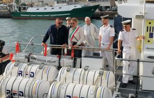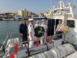 L’Assessore Poggio ha partecipato al passaggio dell’Unità navale lungo il canale navigabile e al lancio, da parte dei militari della Capitaneria, di una corona di alloro in memoria dei Caduti del Mare.