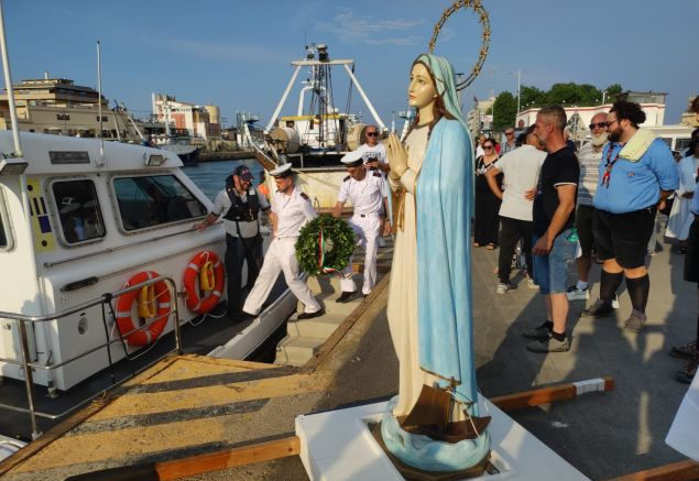 Al termine della funzione, ha avuto luogo la tradizionale processione a piedi fino alla banchina del porto canale, dove le autorità si sono imbarcate su una motovedetta della Guardia Costiera.