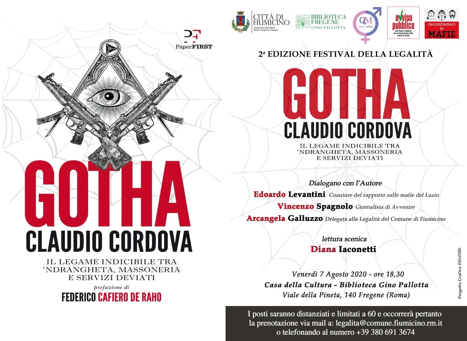 Gli appuntamenti della seconda edizione del Festival della Legalità, la rassegna ideata e organizzata dalla Delegata del Sindaco alla Legalità, Arcangela Galluzzo, proseguono venerdì 7 agosto, alle ore 18.30, alla Casa della Cultura – Biblioteca Pallotta in viale della Pineta 140 a Fregene, con la presentazione del libro di Claudio Cordova “Gotha” con la prefazione di Federico Cafiero De Raho.