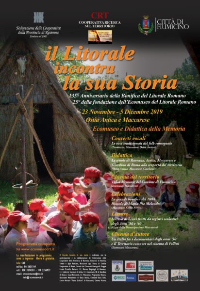 Al via domani, sul territorio di Fiumicino ed Ostia, le celebrazioni per il135° Anniversario della Bonifica del Litorale romano, che coincidono con il 25° anniversario della fondazione dell’Ecomuseo del Litorale Romano.