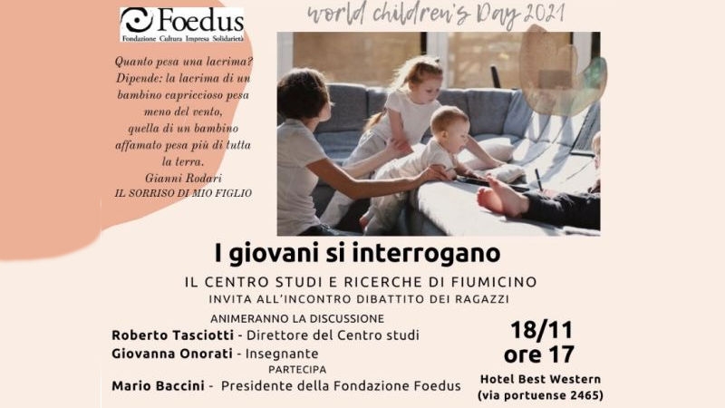 Domani, giovedì 18 novembre, è stato organizzato un convegno per parlare dei diritti dell’infanzia, anticipando la giornata mondiale dei diritti dell’infanzia e dell’adolescenza che si celebra il 20 novembre. l’appuntamento è all’Hotel Best Western di Fiumicino, in via Portuense 2465, alle ore 17.