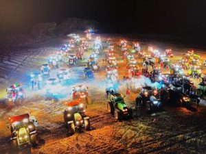 I trattori, come da programma hanno acceso le loro luci al tramonto per rimanere sulla collina per circa due ore, tra momenti conviviali e di ristoro.