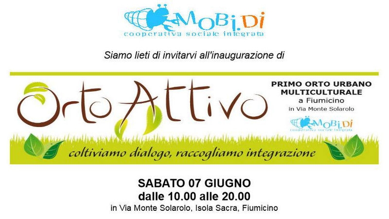 Sabato 7 giugno dalle ore 10.00 alle ore 20.00, in via Monte Solarolo (Isola Sacra) ci sarà l’inaugurazione di “OrtoAttivo”, il primo orto urbano multiculturale.
