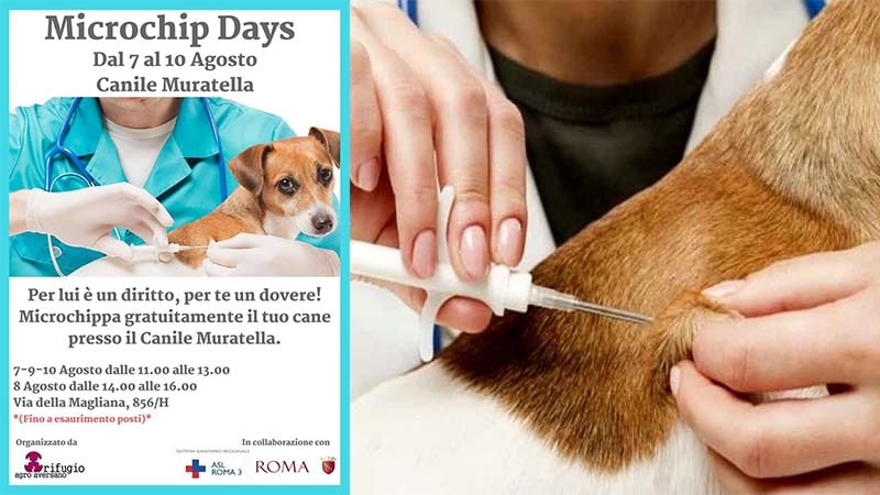 Dal 7 al 10 Agosto presso gli ambulatori del Canile di Muratella a via della Magliana 856H, si applicheranno gratuitamente i microchip ai cani e gatti dei cittadini che ne faranno richiesta. Basterà presentarsi presso i nostri sportelli nelle date e negli orari indicati per mettersi in lista d’attesa, fino a esaurimento posti.